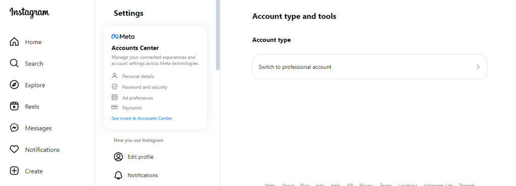 3. Change it to Business Account:
